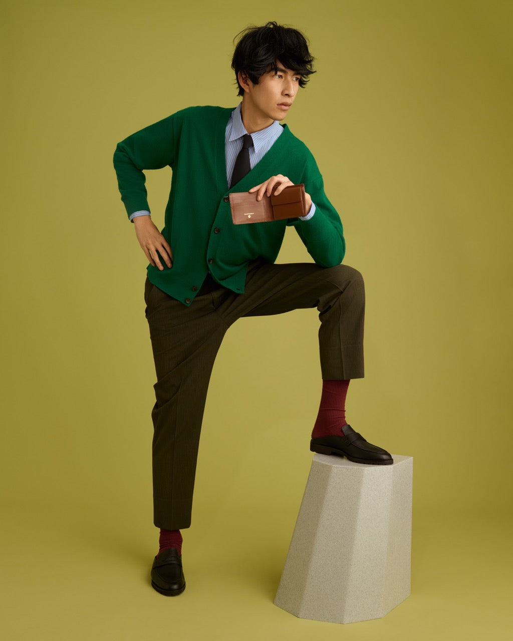 おちゃらけフォーマルスタイル クスッと笑えるような少し崩したコーディネートには、ベーシックで落ち着いたレザーアイテムをプラス。コーディネートとのバランスをとって合わせよう。 使用アイテム Dakota BLACK LABEL<Dakota BLACK LABEL>AM8系列 斜肩包/棕色 ¥1,594.00 Dakotaショルダーバッグ 綠色 ¥1,195.00 VIA DOAN<VIA DOAN>Zilda 方形斜肩包/黑色 ¥3,585.00 賣光了 LEZALI<LEZALI>壓花皮革MT零錢包/天藍色 ¥239.00 CYPRISミニ財布 綠色 ¥1,195.00 Hawk Feathers二つ折り財布 ブラウン ¥1,461.00 賣光了 Liberato樂福鞋 黑色 ¥2,324.00 使用ブランド 持つ人の個性を引き立てるレザーアイテムを提案 Dakota BLACK LABEL ナチュラルなカジュアルアイテムを発信 Dakota ”愛を込めた”手作業がコンセプト VIA DOAN ちょっと面白く便利な雑貨小物などの商品を展開 LEZALI 上質な暮らしを愉しむ大人のためのレザーグッズブランド NO SIGN コダワり派のあなたへ!最高級な技術が詰まったブランド CYPRIS 日本人の熟練職人が生み出す、高い質感と既存のものとは一味違うアイディア Hawk Feathers アップサイクルした畳と柔らかな姫路レザーのシューズブランド Liberato FORMALアイテムコレクション