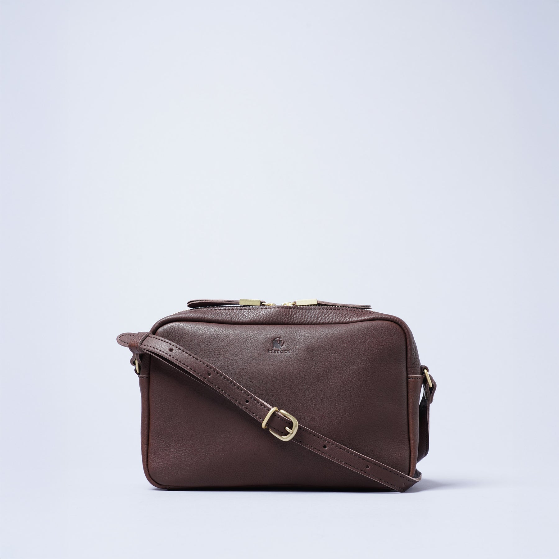 這款迷你斜肩包採用於日本姫路生產的植鞣牛皮製作而成,皮革在製作過程中加入產於義大利的橄欖油,賦予柔潤觸感,並在加脂與摔紋的工序,使皮革更加柔軟並呈現出天然的細緻紋理。由於植鞣製法如同為皮革畫上淡妝,每塊皮革的紋理表現將有所不同,正因如此,可以更加感受到皮革原有的自然風貌。也因皮革未進行過多加工處理,隨著時間經過表面會產生獨特的色澤變化。