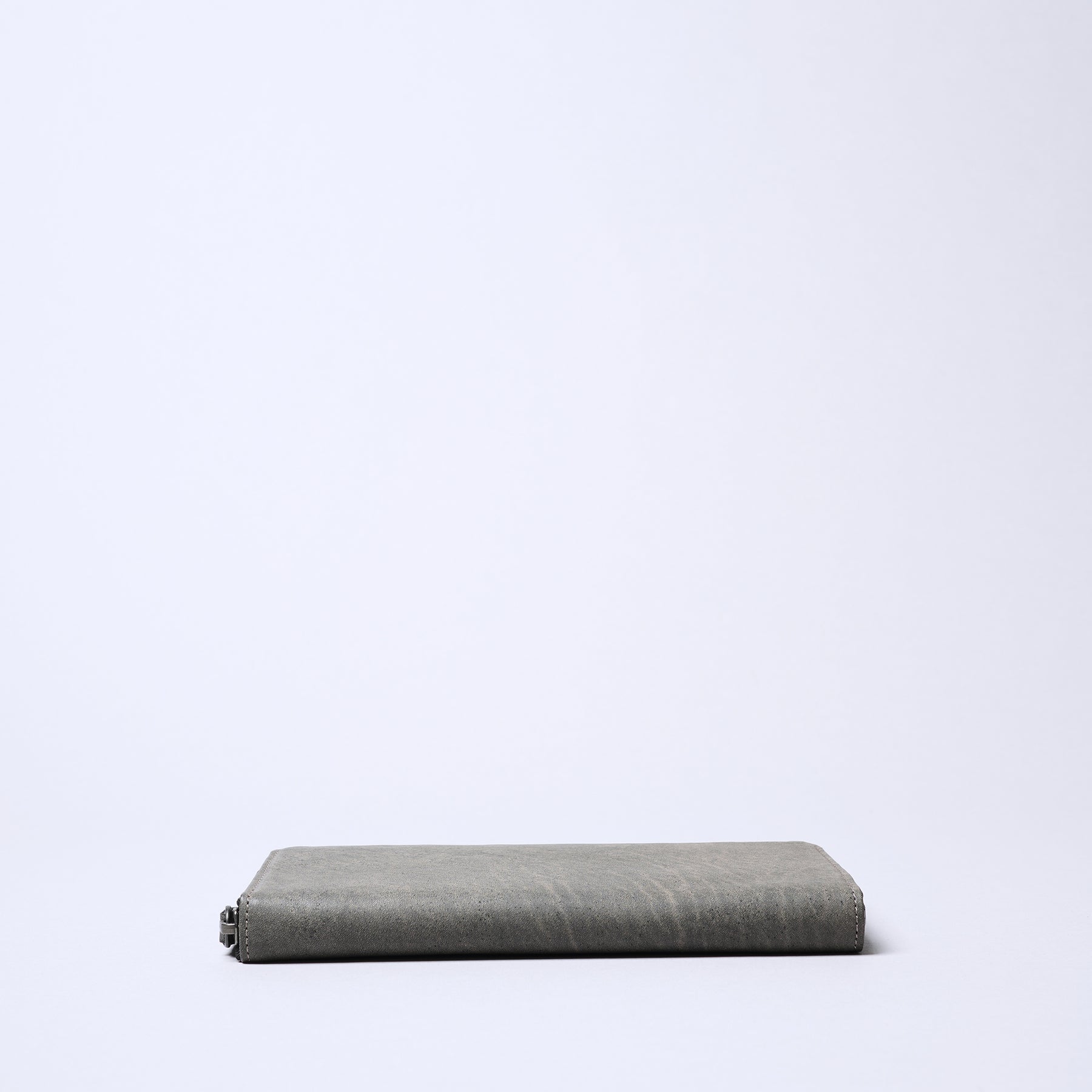 採用生後6個月至2年左右的中牛皮製作而成的這款拉鍊長夾,以細緻且柔滑的觸感為其特色,與成牛皮相比雖然厚度較薄,仍因緊密的纖維而能擁有良好強度。越使用皮革將越柔軟貼合手型,還可享受美麗的舊化現象。此款牛皮以日本古老的染色技術「墨染」處理,墨汁獨特的深邃黑與單一黑色調有所區別,賦予皮革更為內斂的氣質。由於以手工染色,每塊皮革呈現出的色澤和深淺皆有不同,展現出獨一無二的個性。墨染的自然質感更加突顯皮革本身的材質特性。