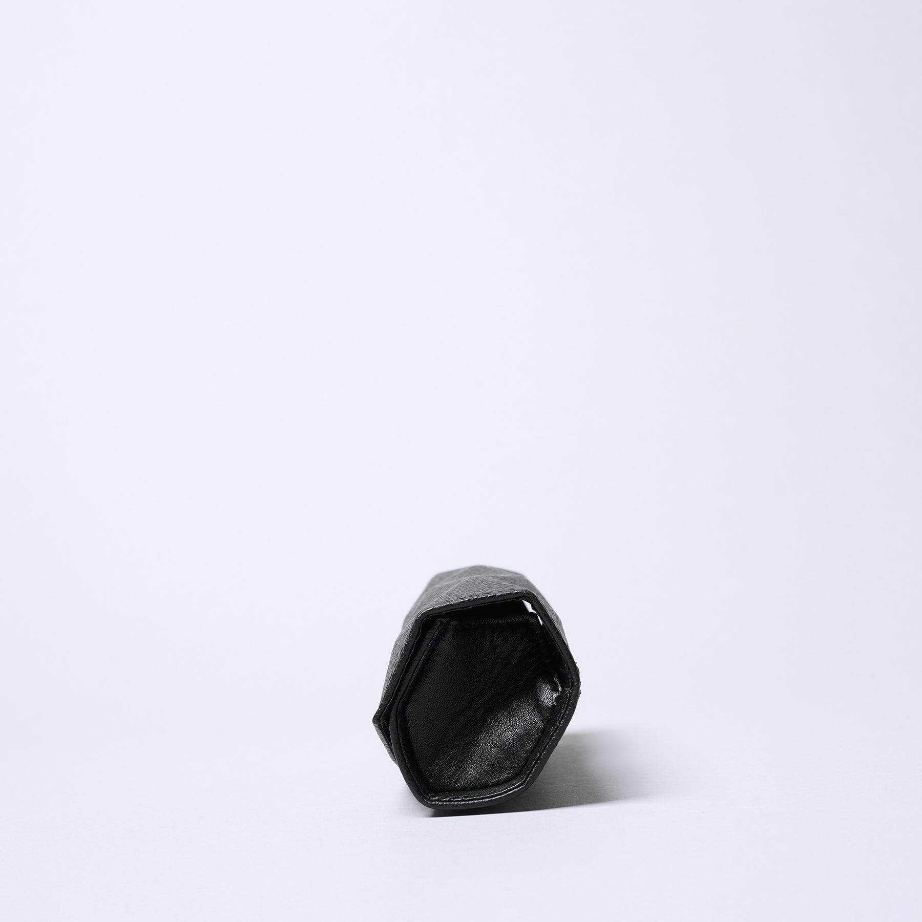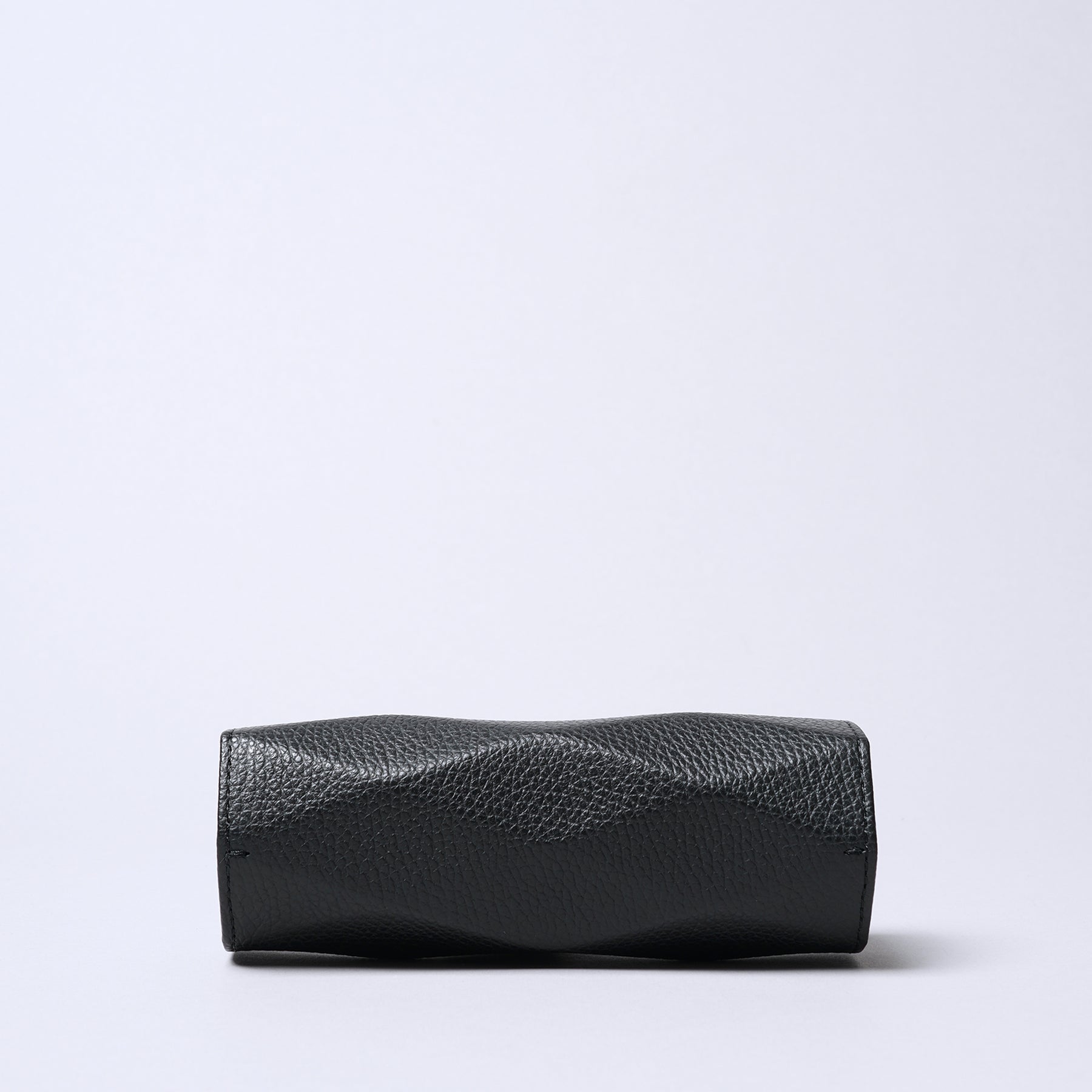 Kolmio【VALO】系列商品,以結合柔軟如小羊皮觸感的牛皮「Lamb Touch」與質地富有彈性的「皺摺皮革(SHRINK LEATHER)」等兩種異材質,呈現獨特設計風格,成為此系列最大特色。隨著使用時間經過,三角形立體輪廓將會更加明顯,可享受皮革色澤韻味的轉變樂趣。