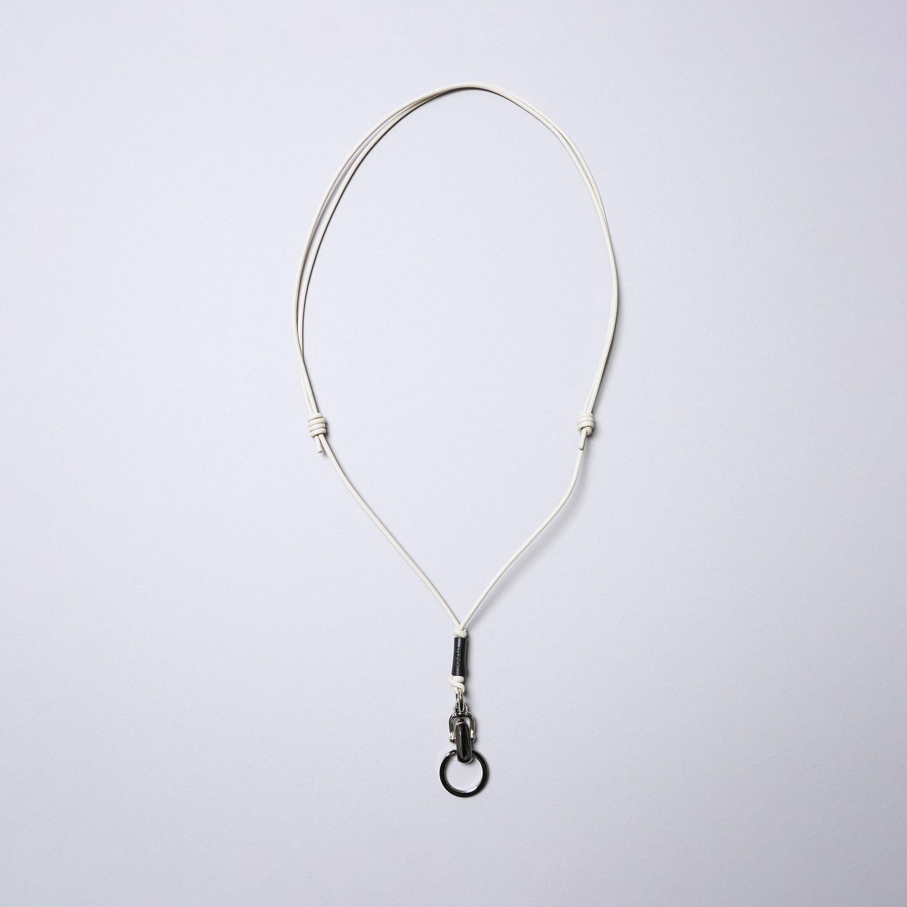 頸掛部分採用柔韌的皮革繩製作,並可透過滑動繩結打結處調整長度(可調整範圍約在80cm至最長150cm/也可斜背使用)