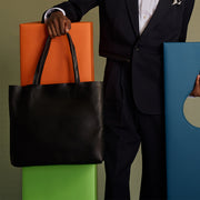 厳選された2枚革を熟練の技術で割り、内側につまむように極力ミニマムに仕立てたトートバッグ。