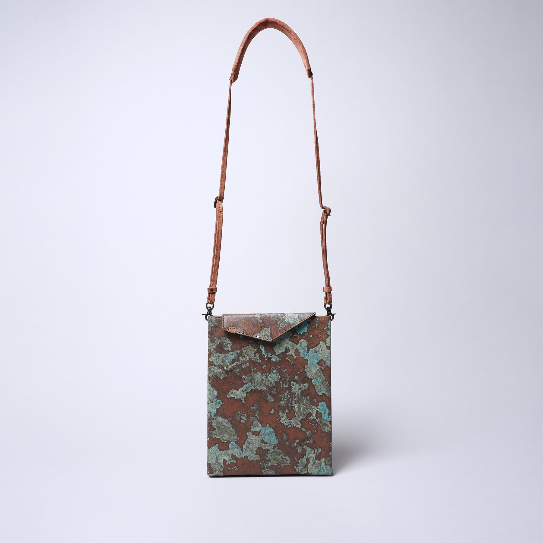 A metal plate is hand-stitched onto the flap, serving as an accent that embodies the keu aesthetic. The included leather strap is removable. The reverse side of the rust-effect leather features velour leather. It offers a very pleasant feel, with color coordination matching each shade.