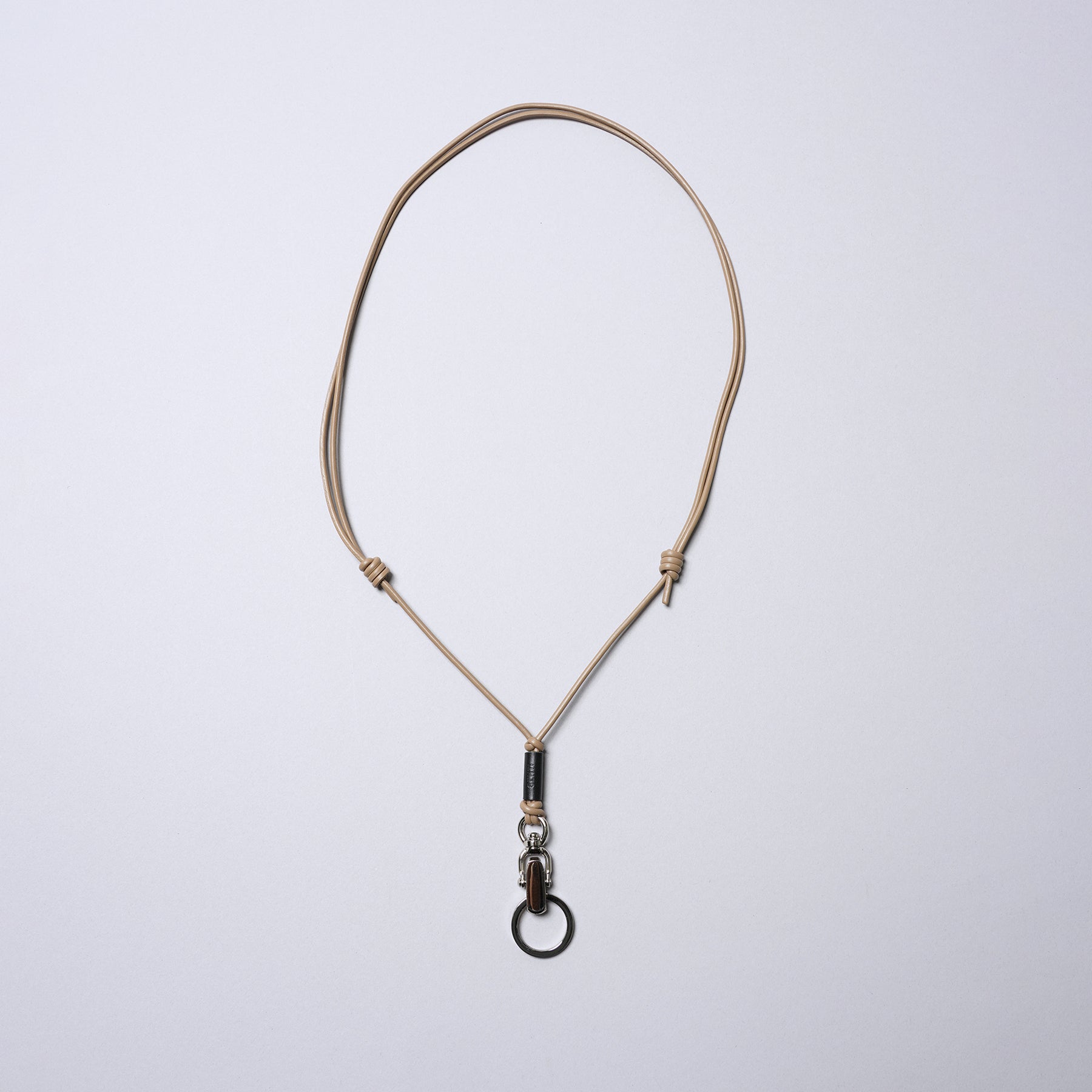 Made with supple leather cord; length adjustable by sliding the knot (approx. 80cm to 150cm maximum / can be worn crossbody).