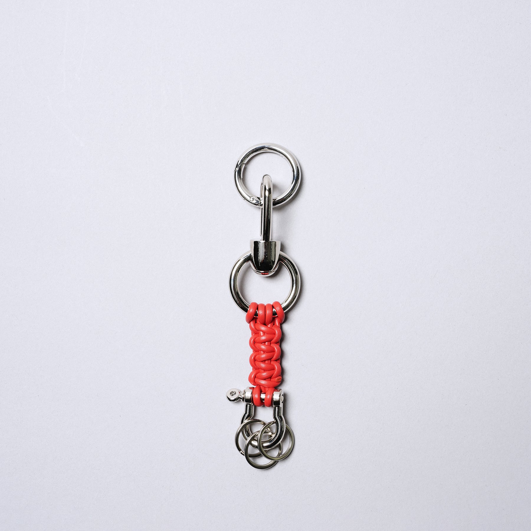 🇯🇵Leather cord braided keychain with hook carabiner and screw-lock D-ring