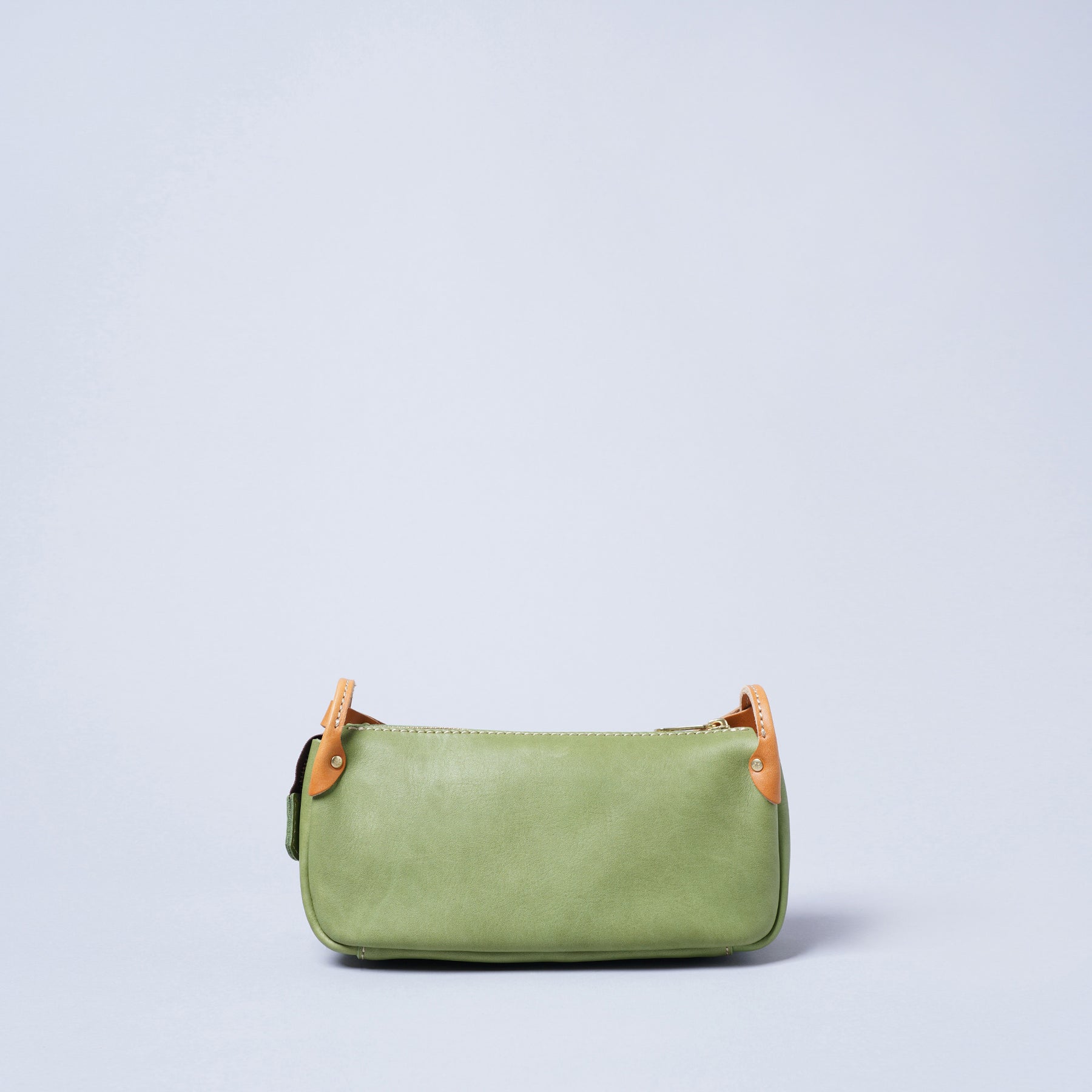Oil leather from Himeji is used. The leather contains plenty of oil and has feels good to the touch and you can fully enjoy the changes over time. The smooth texture of the surface of the leather is also key, that gives it a very leather-like feel. For the shoulder and other accessories, a luxurious piece of thick tanned leather is used.