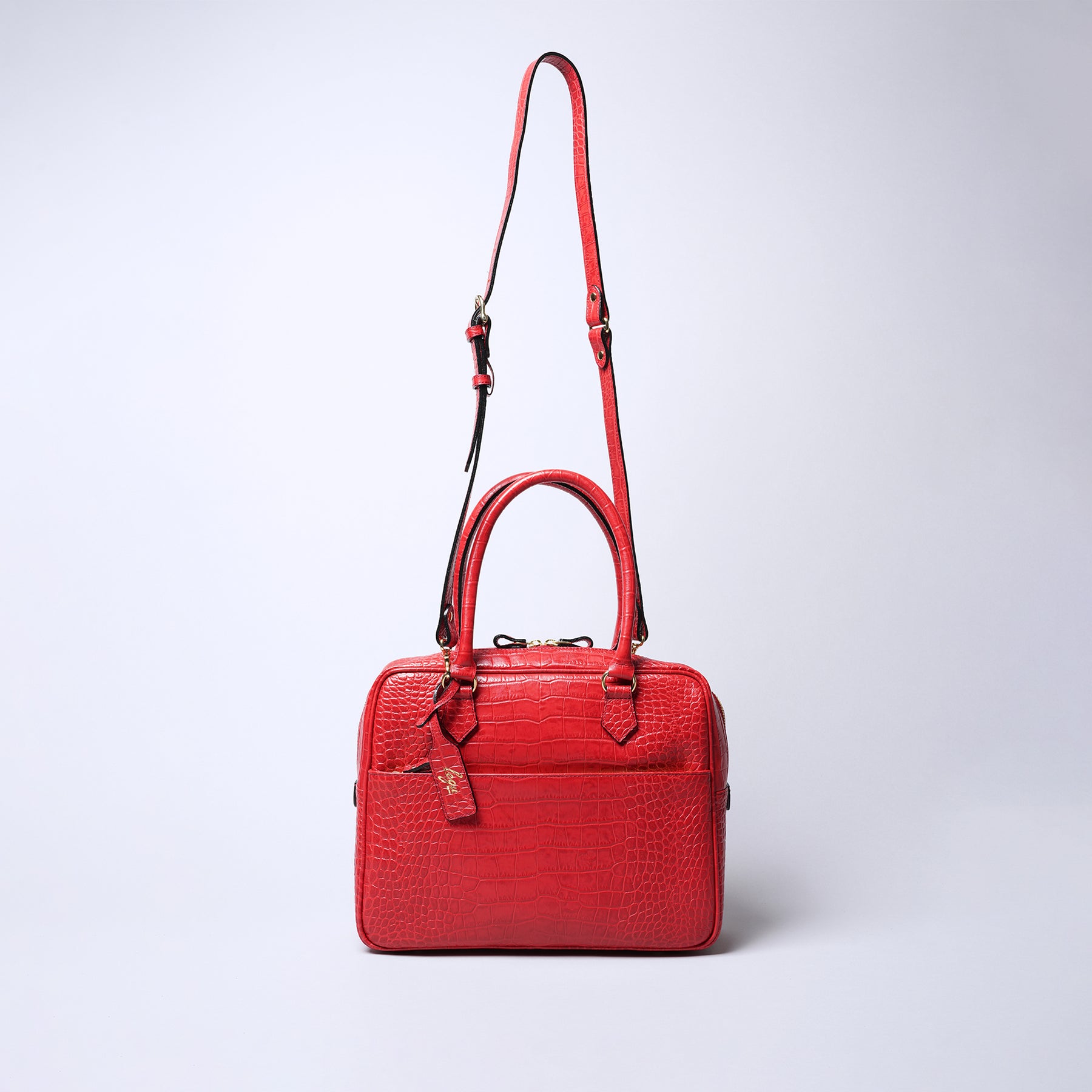 This versatile series excels in both business and everyday settings. Crafted from elegant crocodile-embossed cowhide leather, this tote bag perfectly accommodates A4-sized documents. It features a large front zipper pocket and a generously sized open interior pocket, offering convenient storage and organization. Includes a detachable shoulder strap made from the same premium leather.