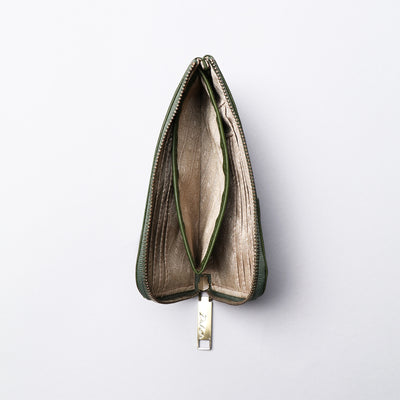 The leather is plush and comfortable to the touch, and carefully crafted by Japanese artisans. The L-shaped zipper makes opening and closing the wallet easy and user-friendly.