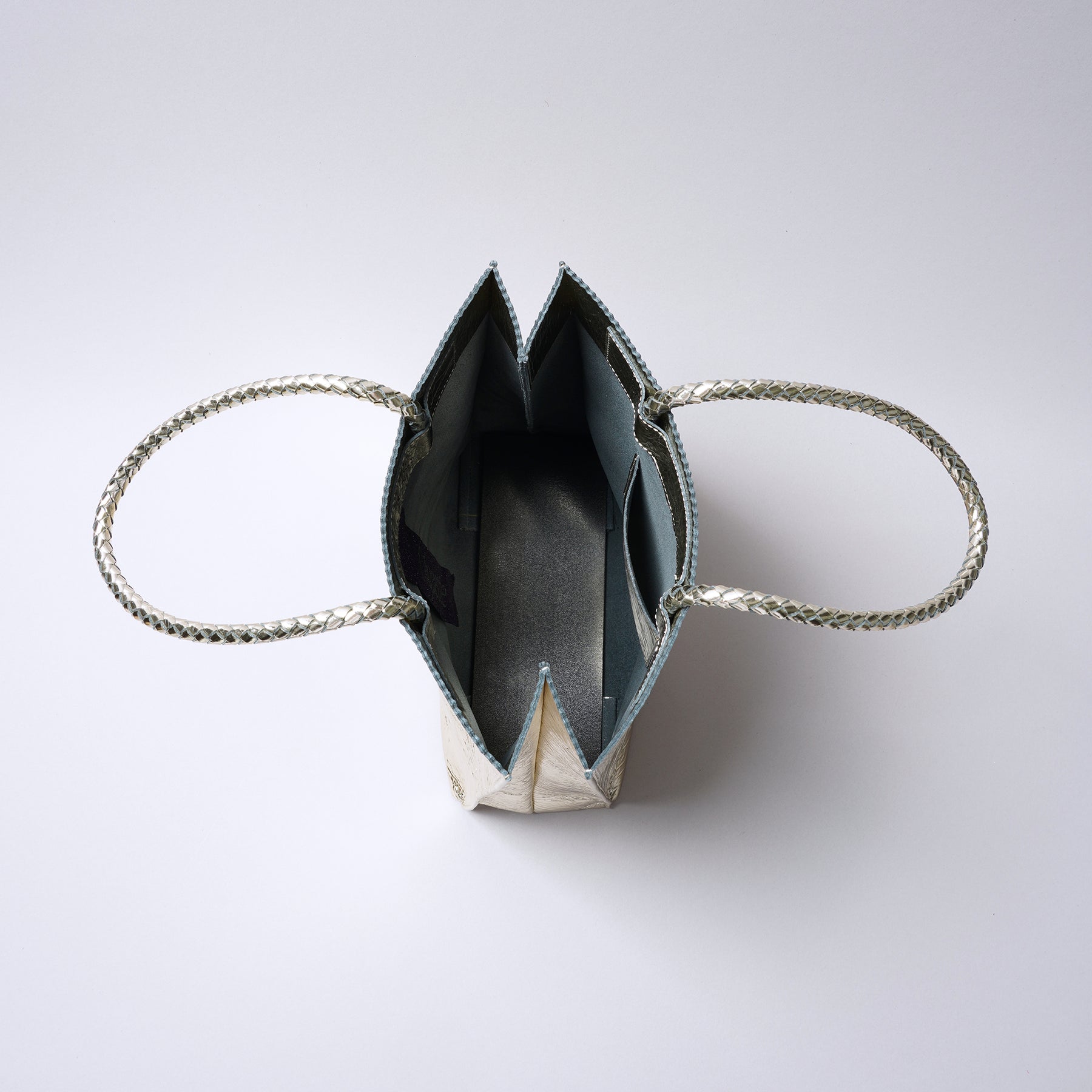 牛革に箔を貼ったイタリア製の革。箔がランダムに貼られているので傷が目立ちにくく、ユニークな表情が特徴です。