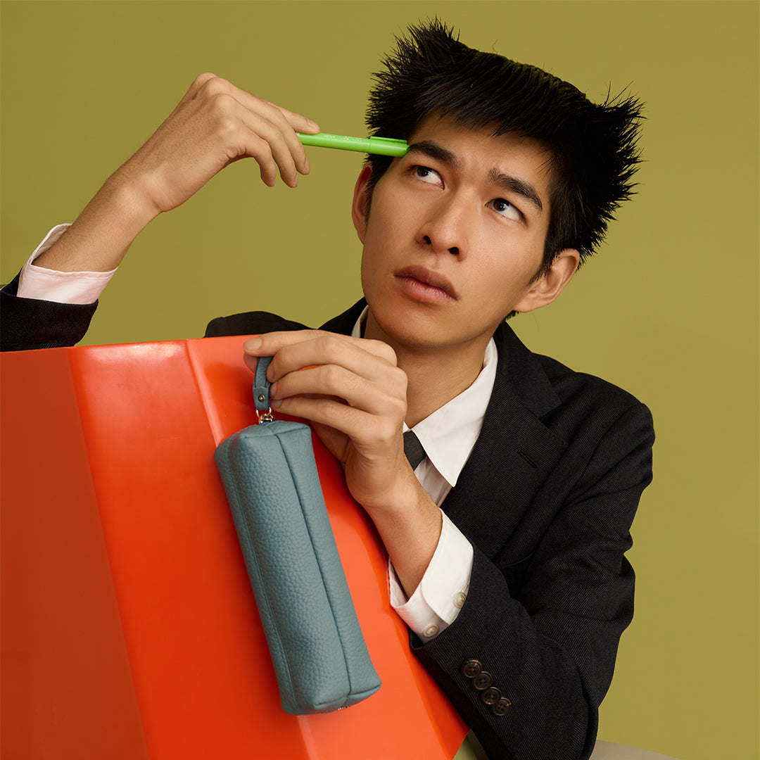 コロンとした可愛らしいディティールに仕上げた大きめのペンケース。