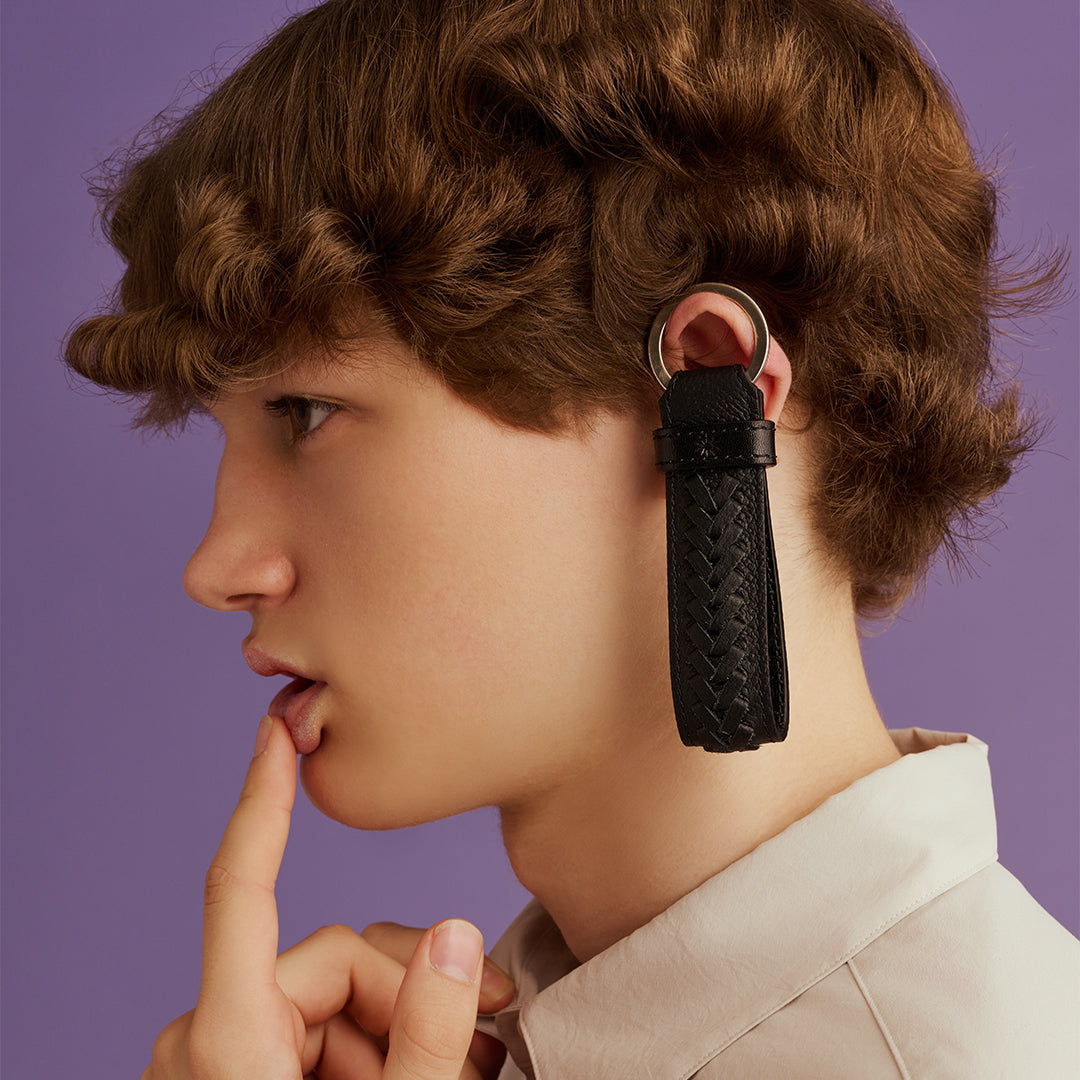 ブランドの象徴的なデザインである、ハンドレースによるアローステッチを施したキーホルダーです。