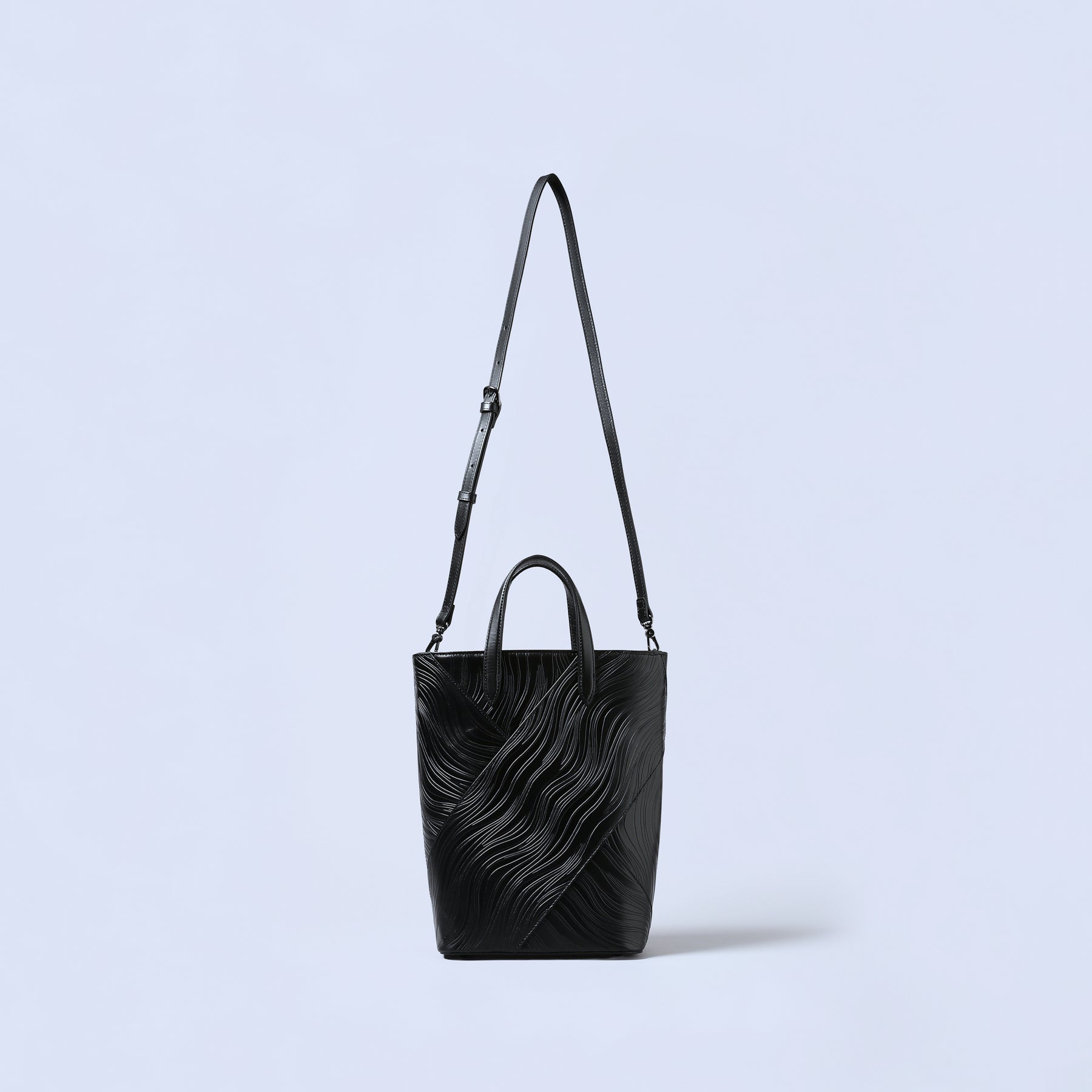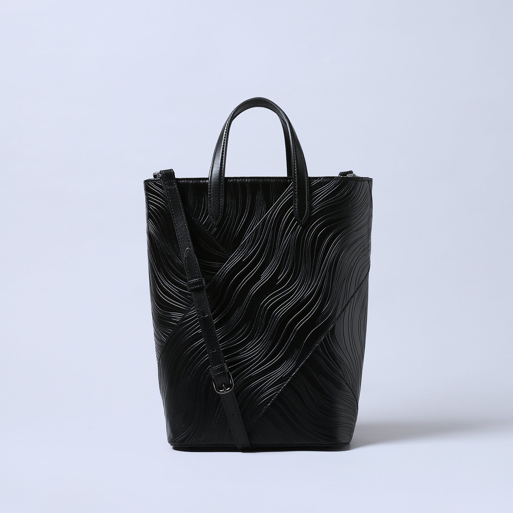 仕立ての美しいフォルムにアーティスティックなエンボスが映える。スタンダードなデザインとエッジの効いた素材の融合はラグジュアリーな気品を漂わせつつモードなスタイルを演出。オンタイムからオケージョンまでスタイリングをモードに昇華させる、切れ味の良いコレクション。