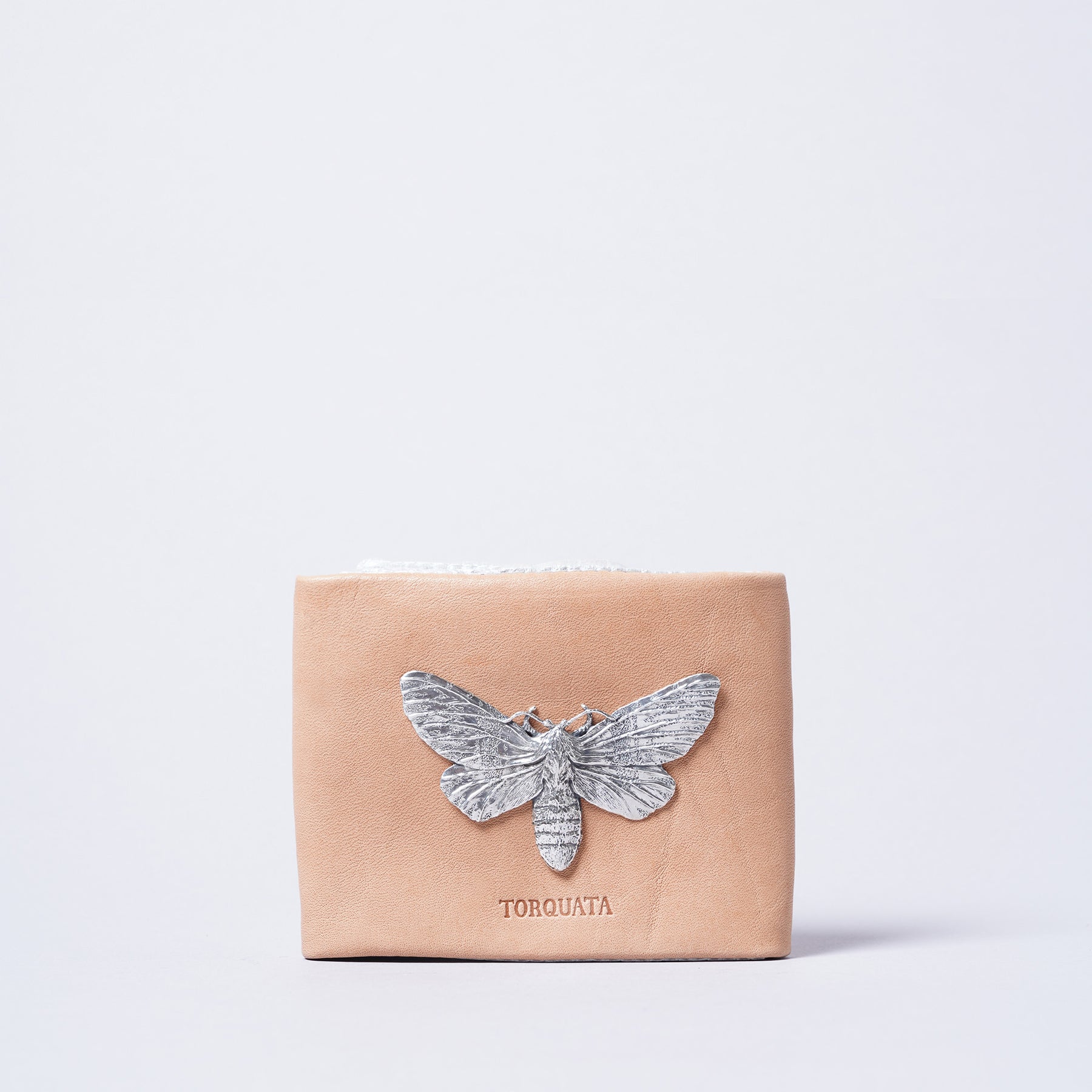 <TORQUATA>昆蟲銀飾 牛皮 二摺式錢包/虎尾蛾/米色