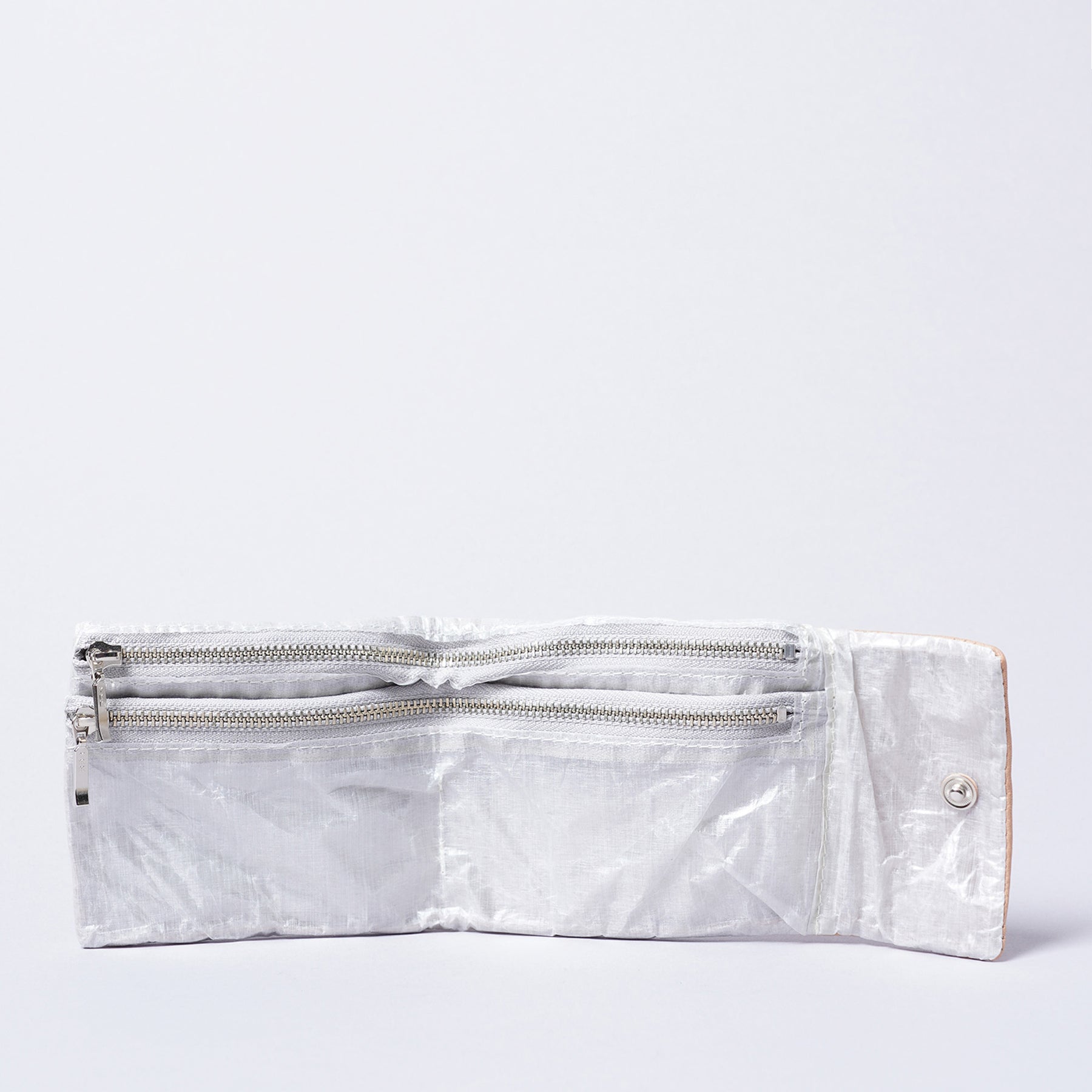 幅広のフリーポケットで、お札を折らずに収納できる広々としたスペース。領収書やチケットの保管にも便利で、整理整頓がしやすい、ファスナー付きの安心設計です。