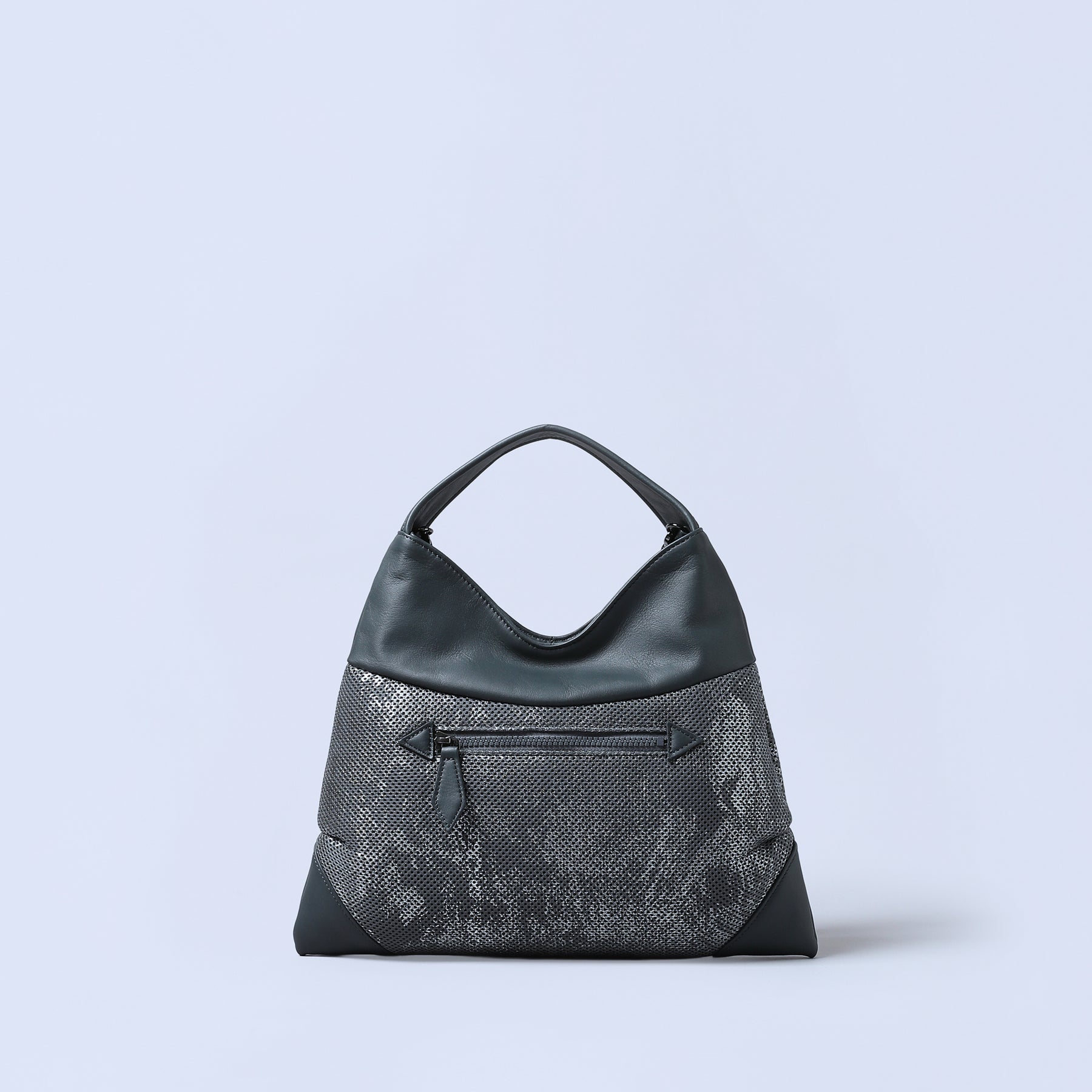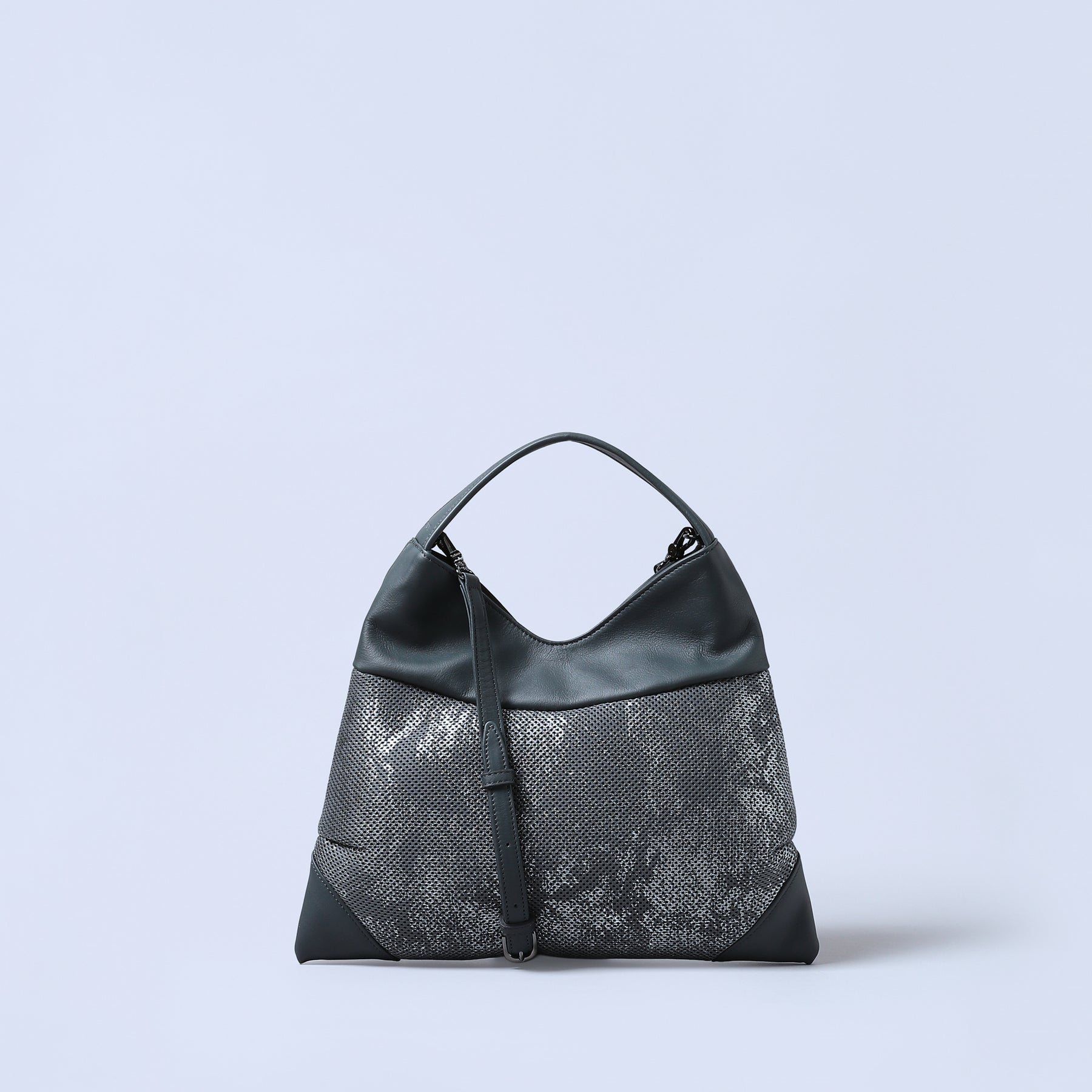 兼具時尚感與實用性的輕量異材質系列。藝術感十足的金屬抽象圖紋,營造出摩登氛圍。材質採用輕盈的蕾絲布與觸感柔軟的牛皮製作。提把手感舒適,柔和了硬朗的時尚調性。兼具實用性與時尚感的這款包包,成為成熟女性的日常最佳夥伴。