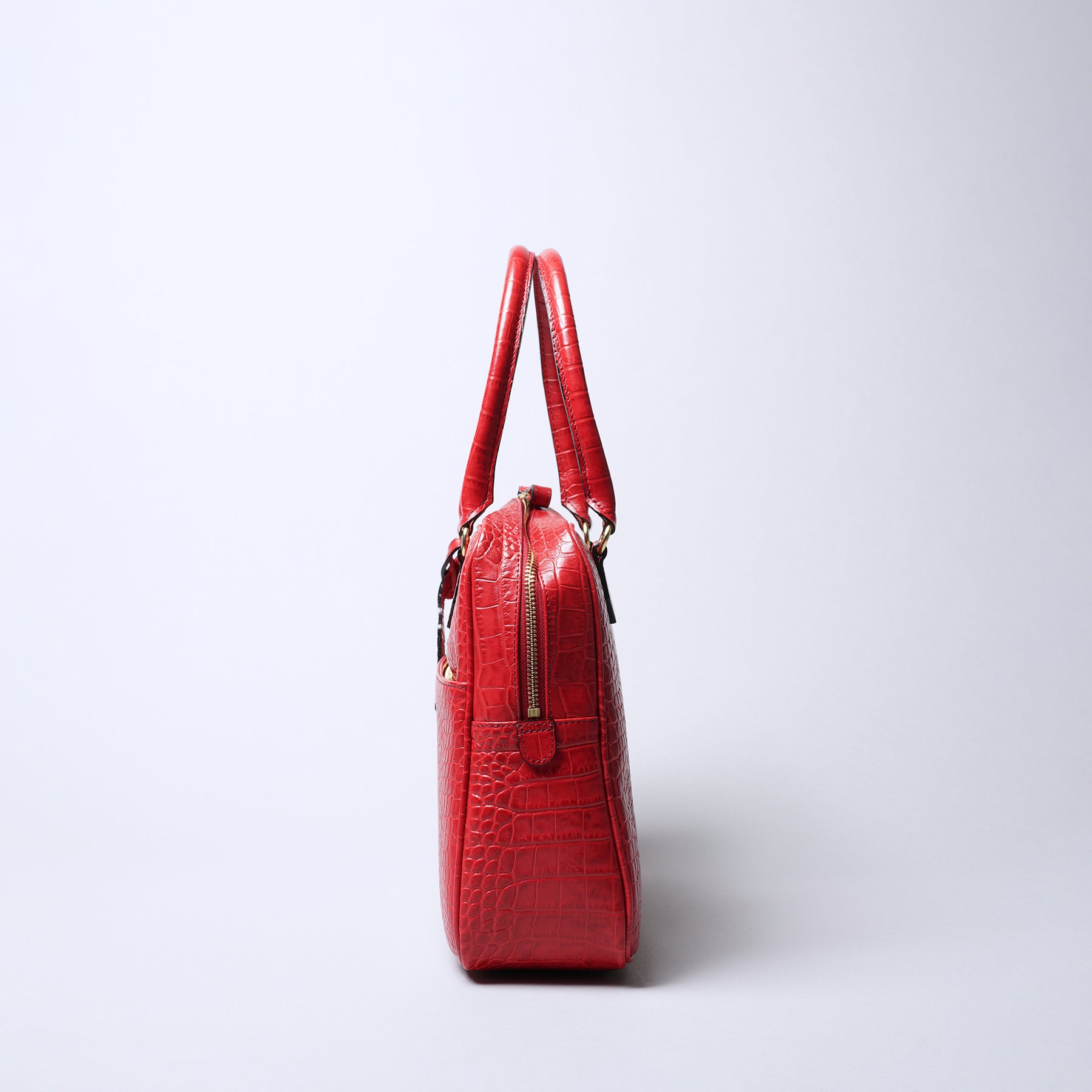 這款Chroma系列的托特包使用高雅的鱷魚壓紋牛皮製作而成,設定於剛好可收入A4尺寸大小物品,從商務場合至日常生活等各種場景皆可廣泛使用。包包前方設有大型拉鍊口袋,內側則設置大型寬敞的開放式夾層口袋,方便收納與分類,並附有可拆卸式的同材質肩揹帶。