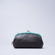 イタリア輸入レザーを採用した、シボの有る表情と手触りのソフトな風合い、発色の良さが特徴の革です。内装には東京産の発色の良いピッグスエード革を使用し国産の口金に革を巻き込んで合わせたモダンスタイルです。スムーズにワンクッションで開閉できるため中身を取り出しやすく便利です。また、取り外し式の長さ調節可能なショルダー付ですのでショルダーバックやショルダーを取り外してセカンドバックにも使っていただけます。内装にポケット1つあり、tonericoの葉のチャームが付くのも嬉しいポイント。